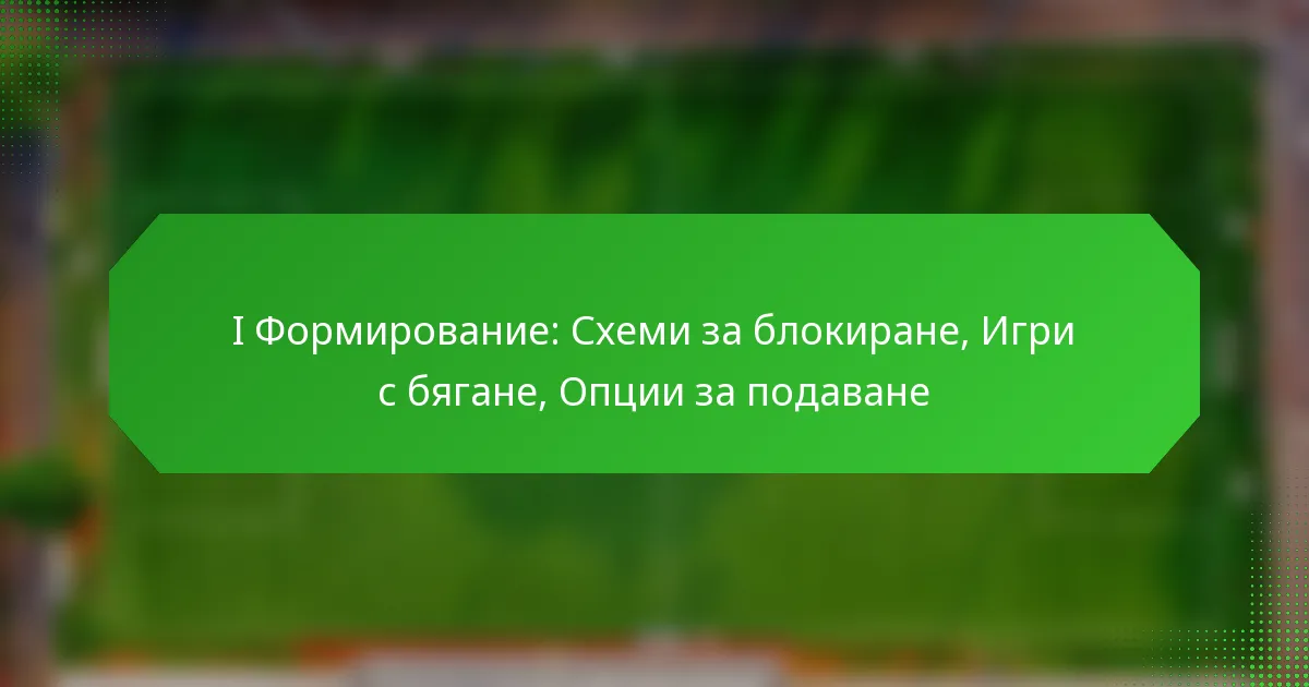Блокиращите схеми във формацията I определят как офанзивните лайнмени взаимодействат с защитниците, за да създадат отвор за носителя на топката. Двата основни типа са зонално блокиране и мъжко блокиране, като всеки служи на различни стратегически цели. Зоналното блокиране се фокусира върху създаването на линии, като се движат в синхрон към определена зона, докато мъжкото блокиране назначава конкретни защитници на всеки лайнмен.
